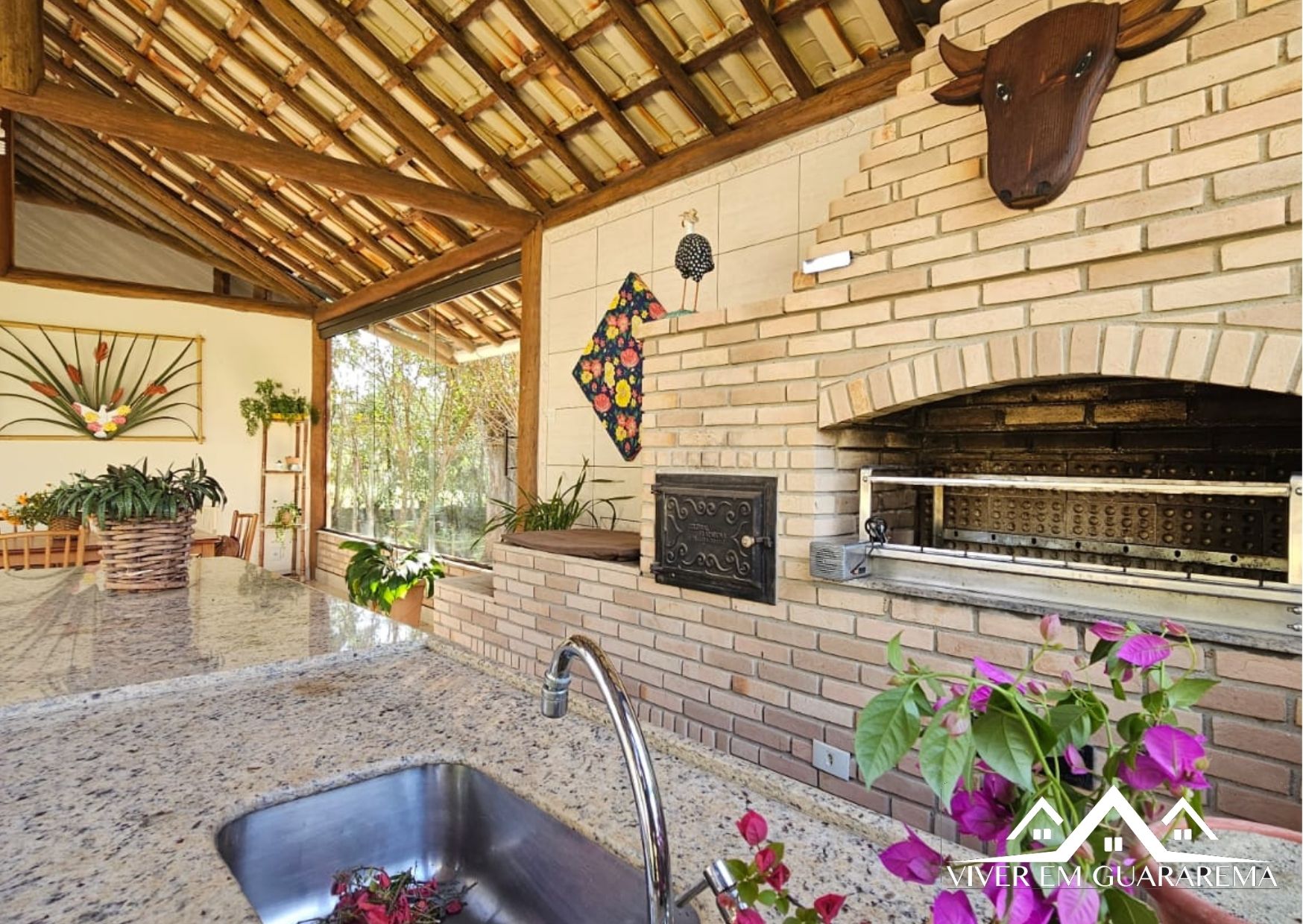 CASA PRINCIPAL: espaço gourmet de 80 mts2,com fogão a lenha com forno e Churrasqueira com 8 espetos giratórios. Ilha pia.