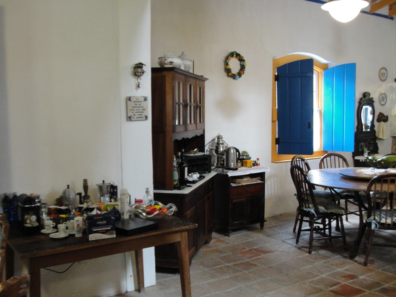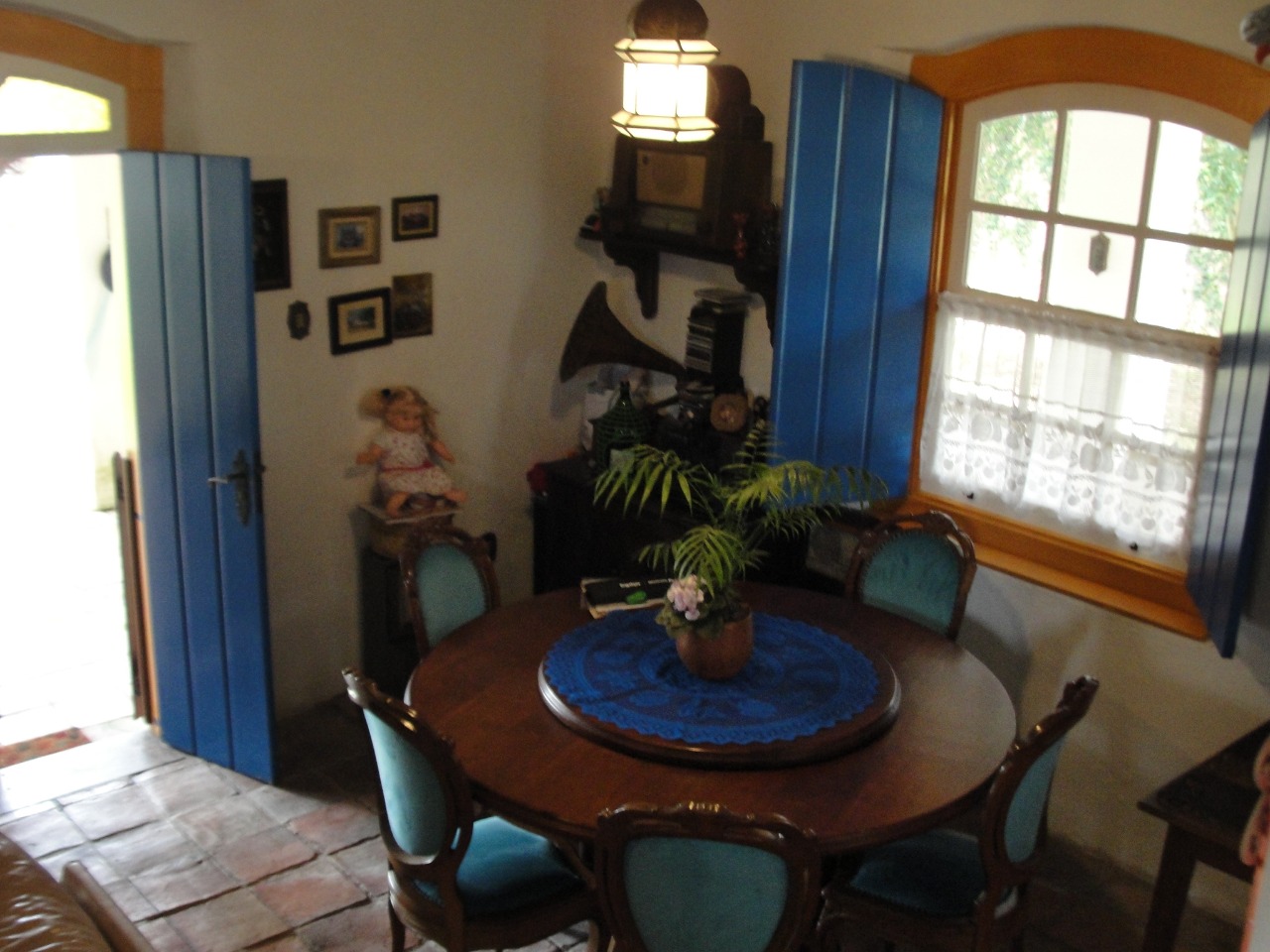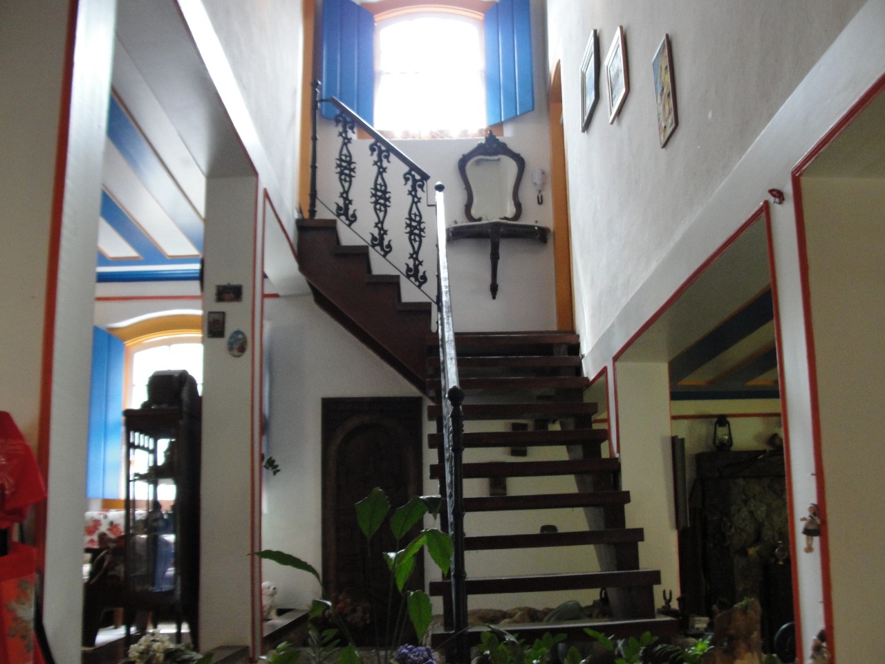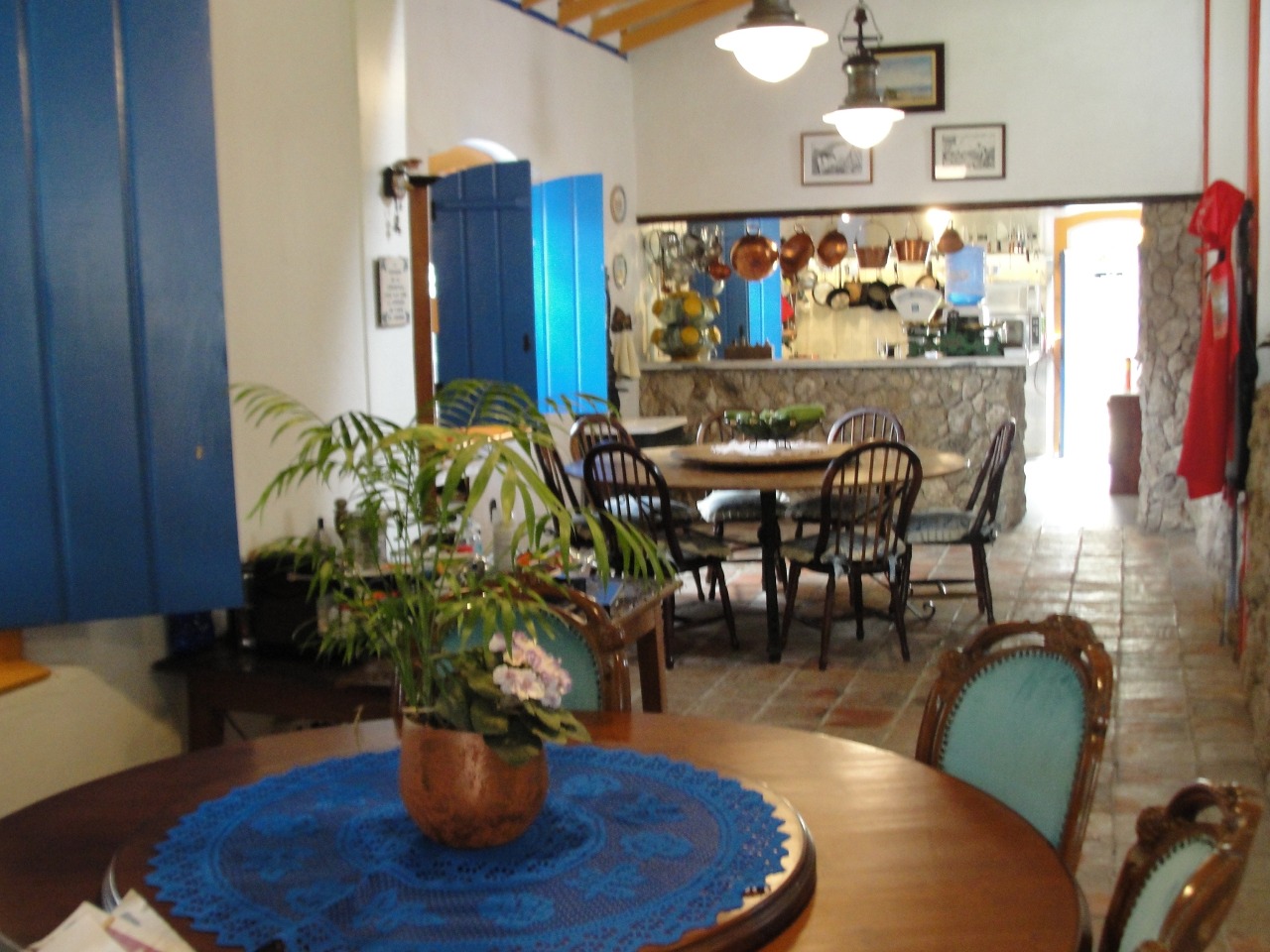 Pav. Térreo: Sala de estar com lareira, ampla sala de jantar, cozinha, despensa, adega no porão.