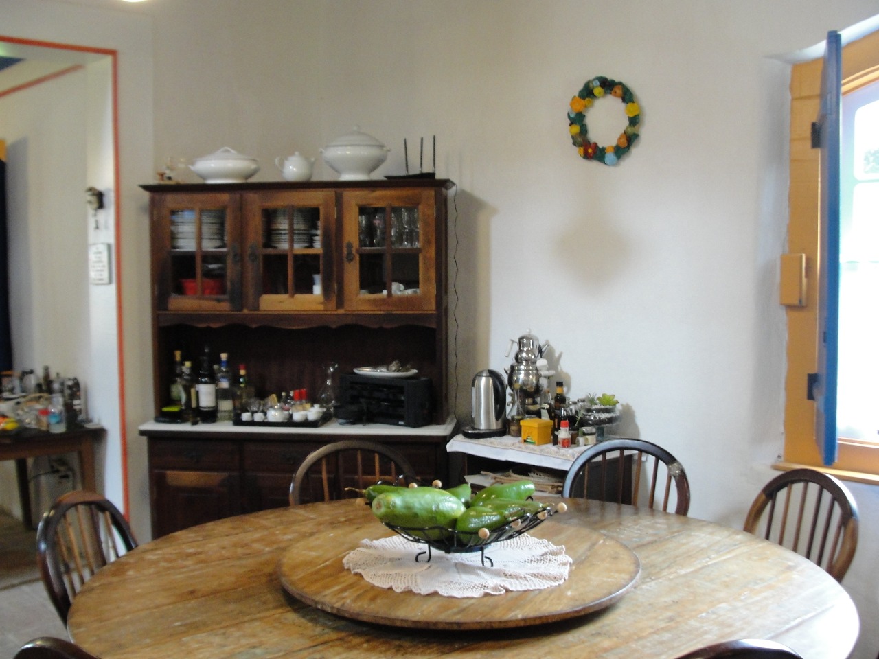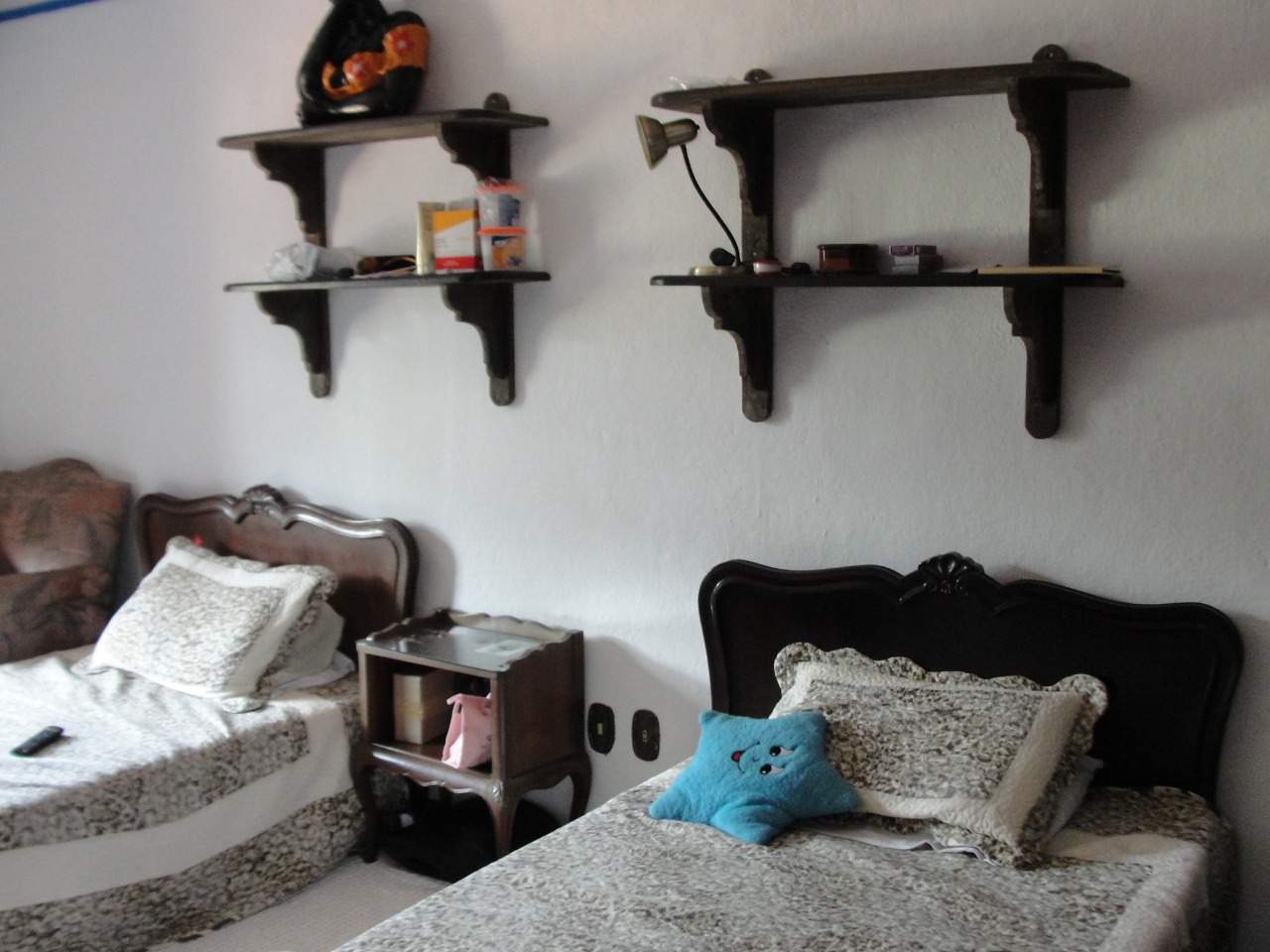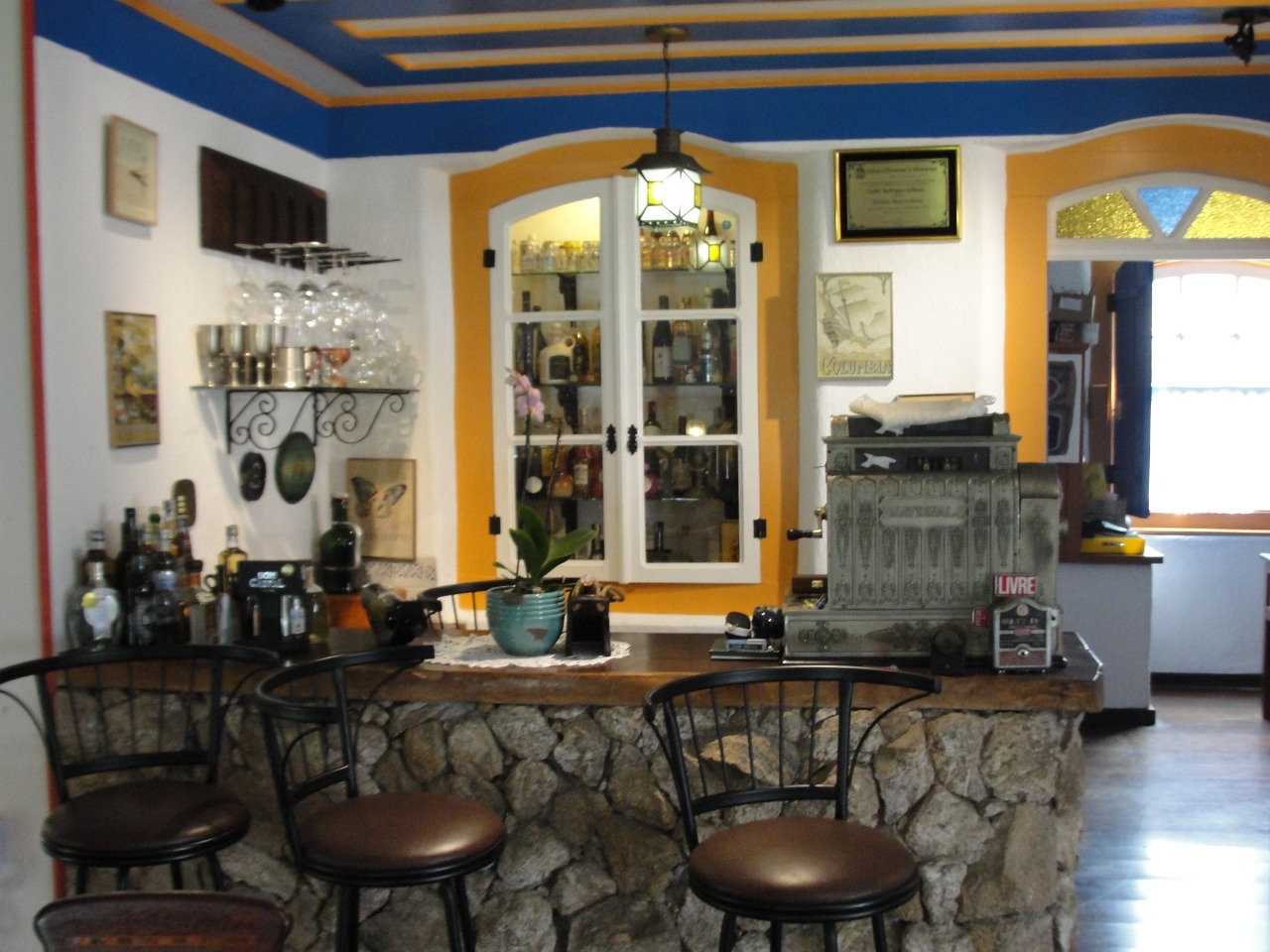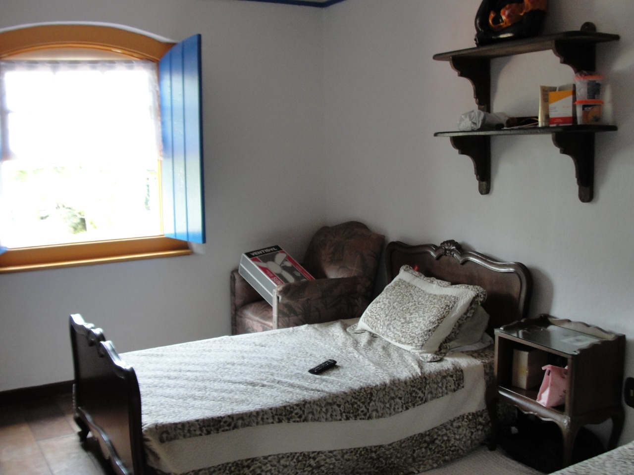Pav. Térreo: Sala de estar com lareira, ampla sala de jantar, cozinha, despensa, adega no porão.