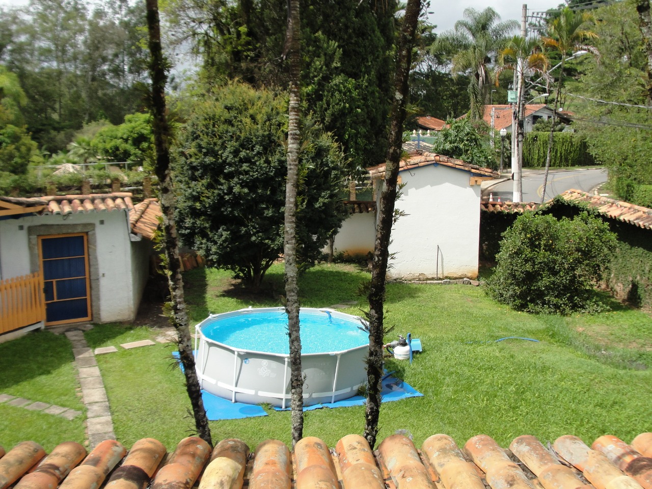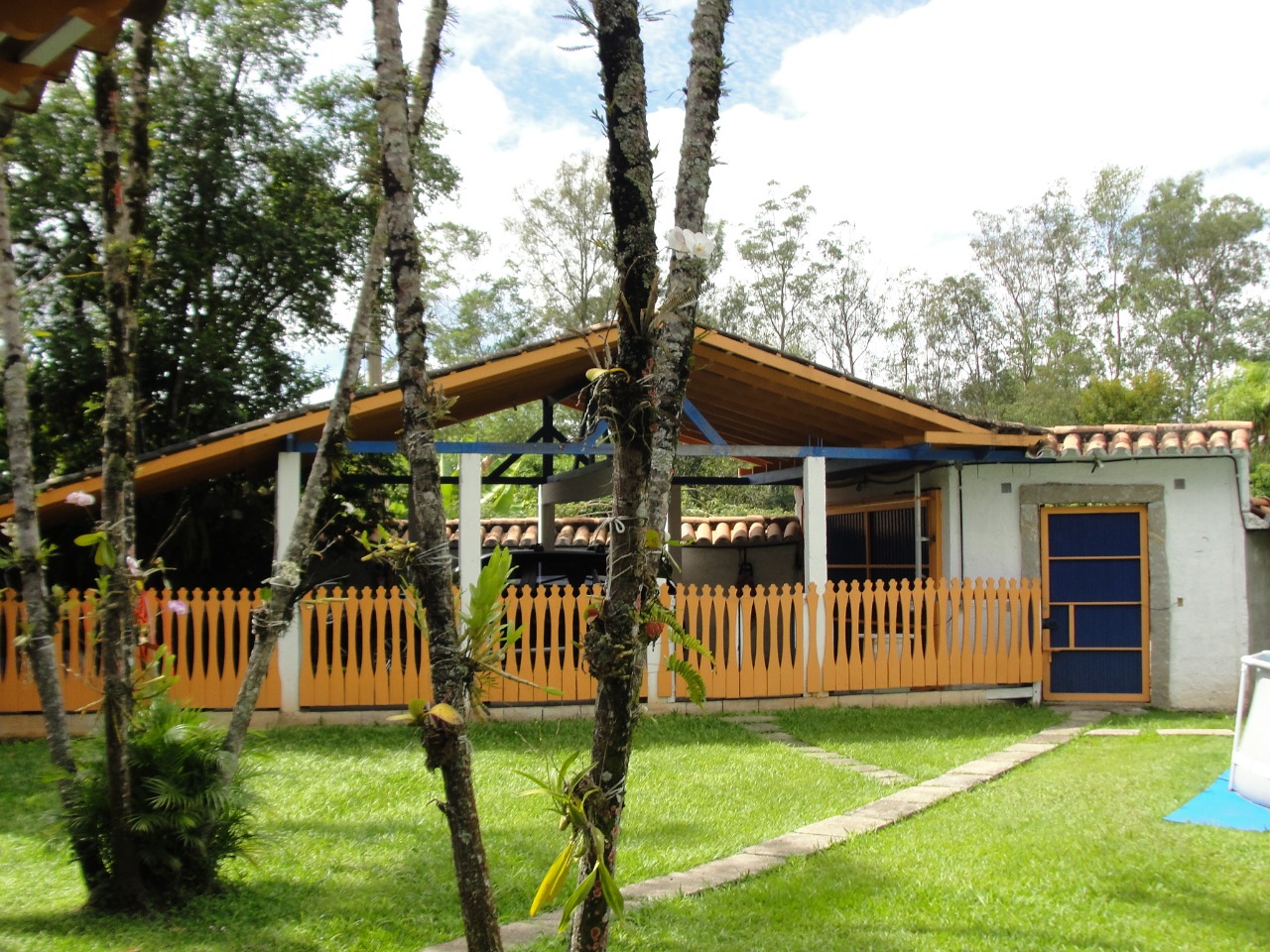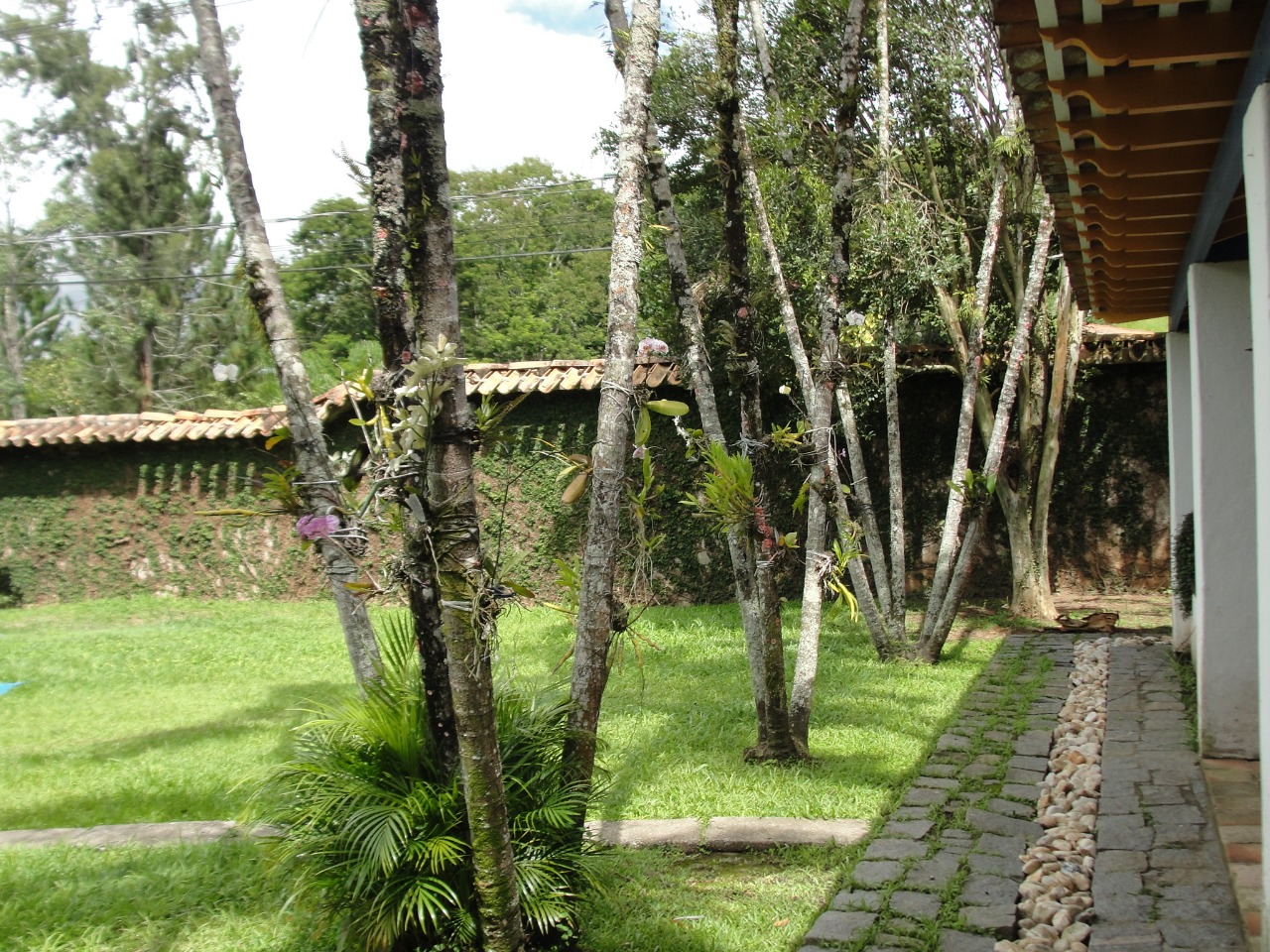 Amplo quintal com canil, árvores frutíferas, garagens com portões automáticos e capelinha.